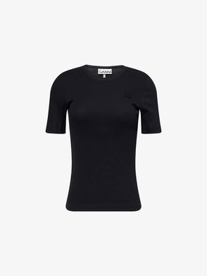 Heavyweight organic cotton jersey T-shirt.· Rib-knit crewneck· Embroidered metallic logo at front· Dropped shoulders.