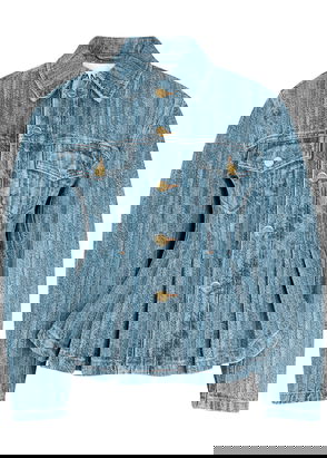 Distressed organic cotton denim jacket, finished with GANNI's signature peter-pan collar.