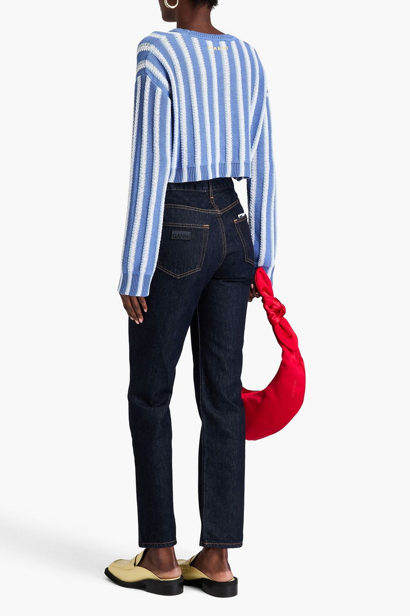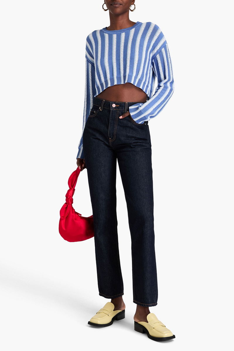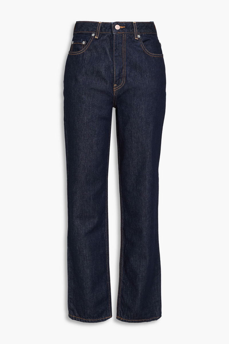 Straight-leg jeans, Denim, Belt loops, High-rise cut, Five pockets, Button and concealed zip fastening at front, Mid-weight, non-stretchy fabric.