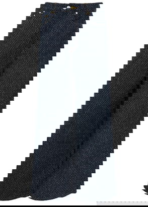Wide-leg non-stretch organic cotton denim jeans. Fading, subtle distressing, and whiskering throughout. · Belt loops· Five-pocket styling· Button-fly· Embroidered logo patch at back· Contrast stitching in yellow.