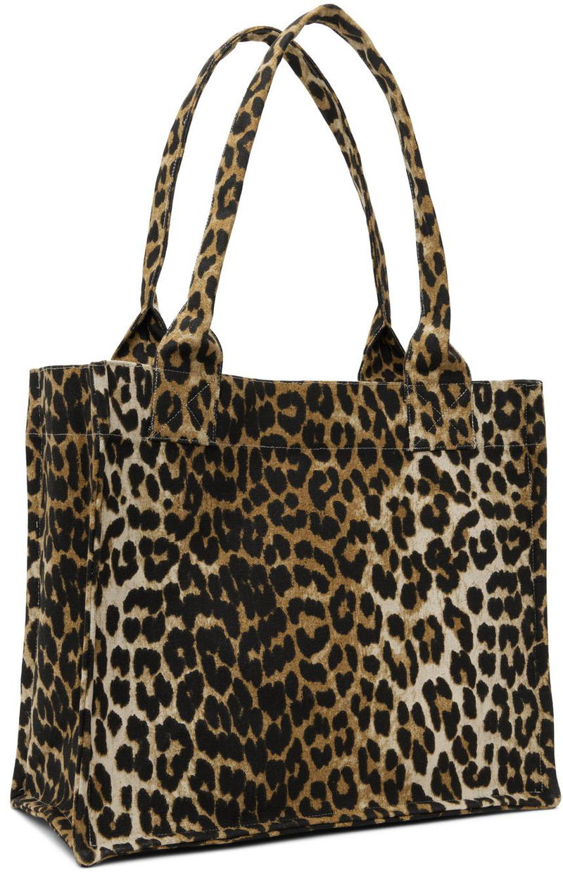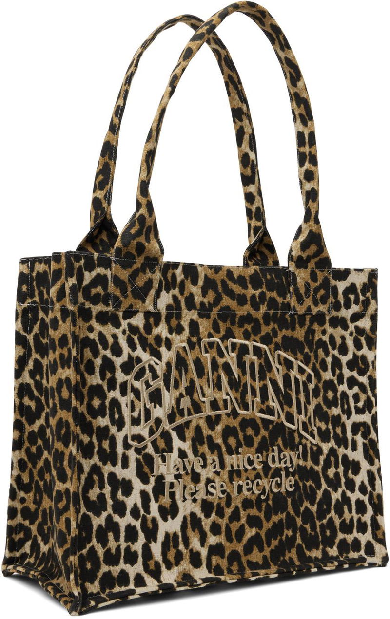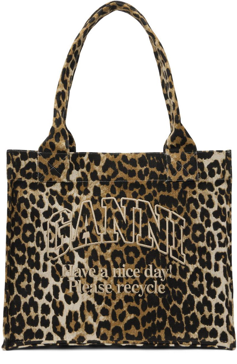 Recycled cotton canvas tote in tan and black.· Leopard pattern printed throughout· Fixed shoulder straps· Logo and text embroidered at face· Plain-woven recycled cotton lining.