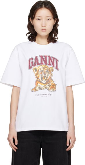 Stretch recycled nylon mesh T-shirt. Logo and leopard pattern printed throughout. · Scoop neck · Partial jersey lining.