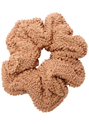 Ganni champions the revived scrunchie trend with this black and beige style. It's made from a soft linen blend infused with a touch of silk and printed with a leopard pattern that reflects the Scandinavian label's adventurous tone. Keep it on your wrist to tie your hair into practical ponytails.