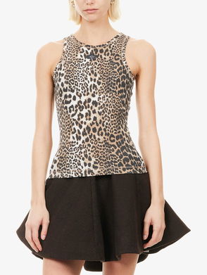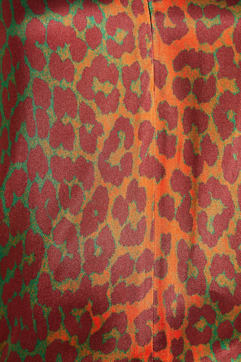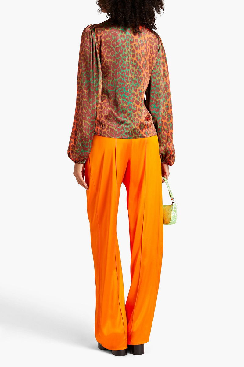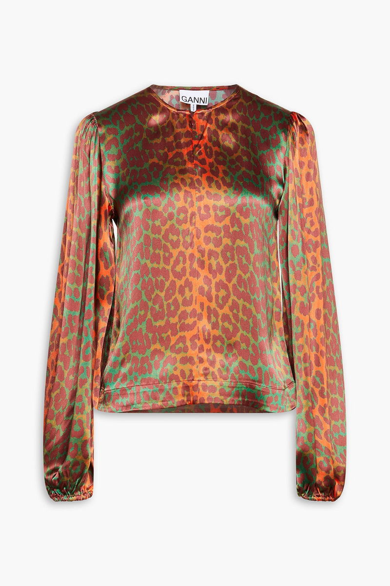 Top, Leopard-print, Satin, Gathered sleeves, Elasticated cuffs, Concealed zip fastening along front, Non-stretchy fabric, Mid-weight fabric.