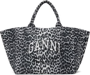 Tote, Leopard-print, Shell, Designer stamp, Two top handles, Drawstring top, Fully lined in shell, This bag will fit a standard laptop and a change of flats.