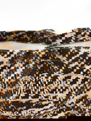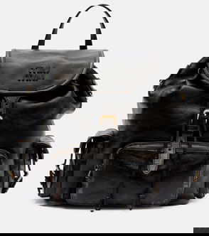 GRS-certified recycled nylon twill backpack in tan and black.· Printed leopard pattern and leather trim throughout· Padded carry handle· Adjustable padded shoulder straps· Magnetic press-stud flap with pin-buckle hardware· Logo hardware at face· Flap pockets with pin-buckle hardware at sides· Drawstring closure· Zip pocket at interior· Recycled satin lining· Logo-engraved silver-tone hardware.