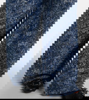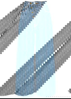 GANNI 'Magny' jeans cut from denim and printed with classic blue and white stripes. They have a mid-rise waist and wide legs.