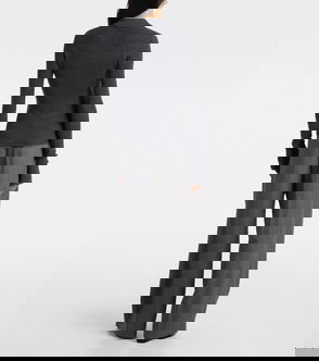 Super high-rise with pleats Two front pockets Side zip and belt closure Lightweight viscose-blend fabric with minimal stretch Distinct, marled monochrome effect resulting in grey colour Unlined.