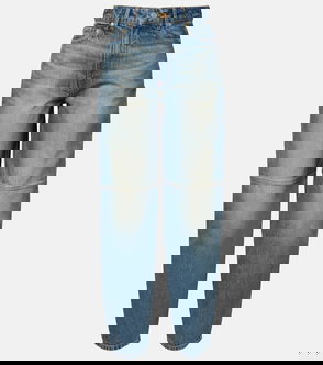 Barrel-leg jeans, Metallic, Denim, Coated, Belt loops, High-rise cut, Five pockets, Button and concealed zip fastening at front, Mid-weight, non-stretchy fabric.