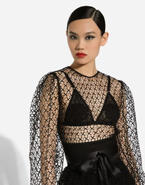 Dress, Metallic, Crochet-knit, Ribbed trims, Slips on, Non-stretchy fabric, Mid-weight open knit.