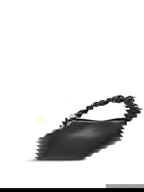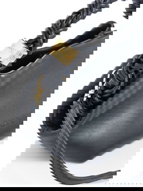 Buffed GRS-certified recycled leather-blend top handle bag in black and brown. · Leopard pattern printed throughout· Logo plaque at braided carry handle· Adjustable and detachable crossbody strap· Logo hardware at face· Logo embossed at back face· Magnetic press-stud closure· Card slot at interior· Recycled cotton-blend twill lining·