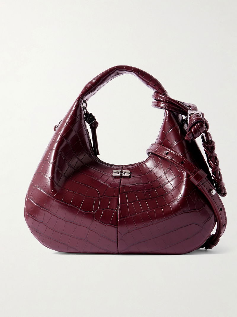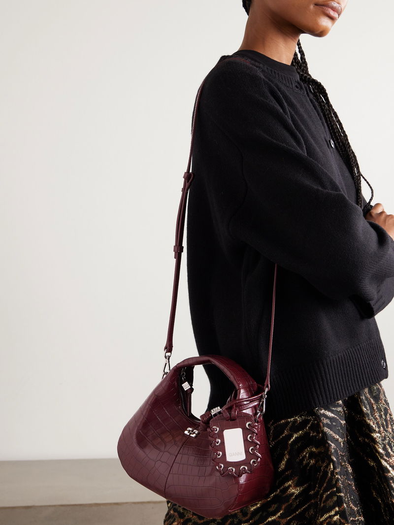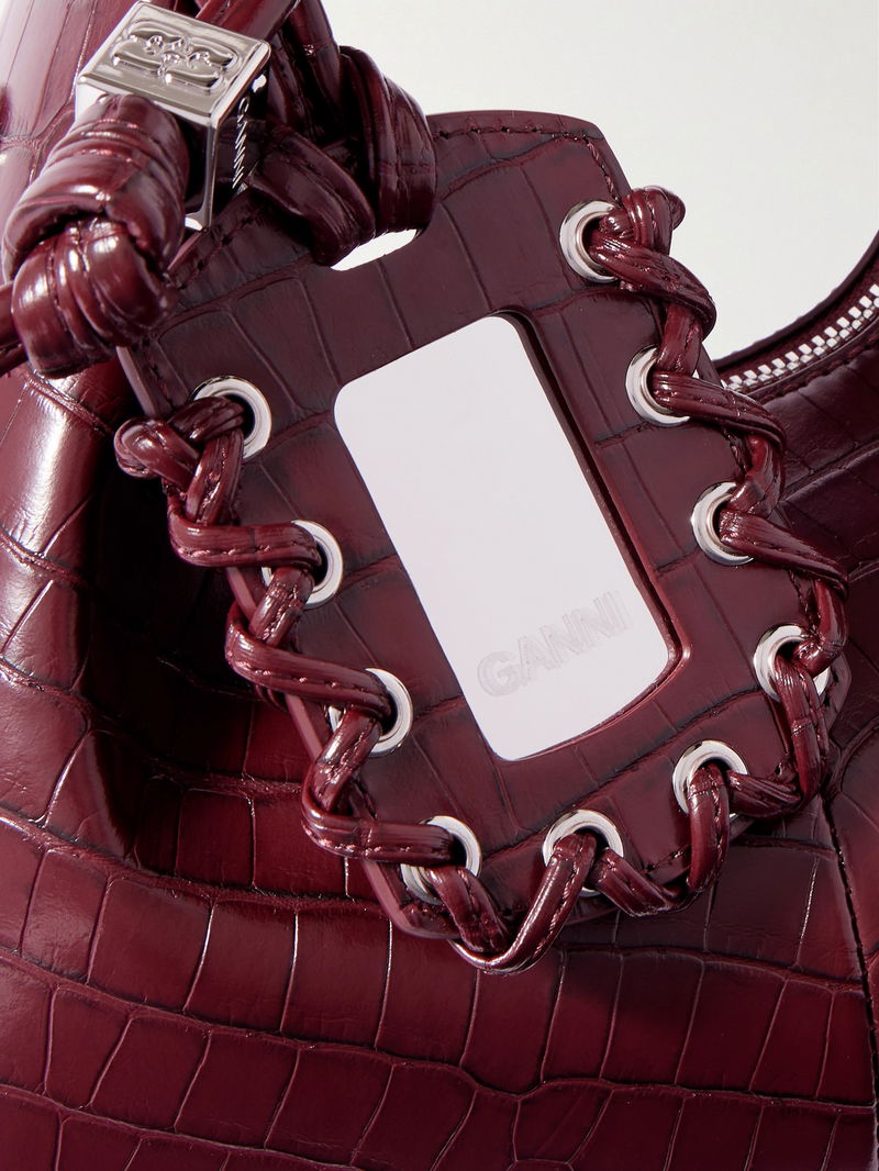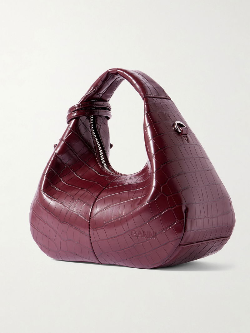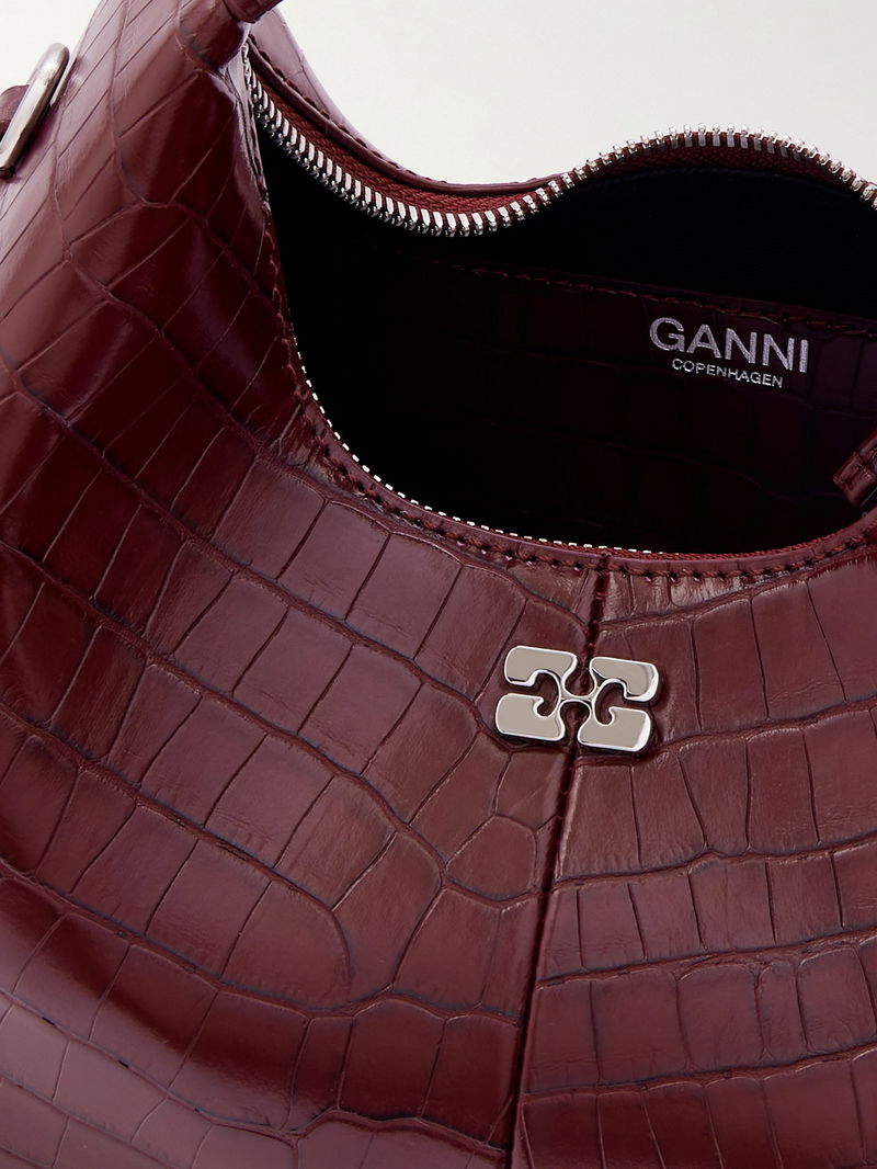 A modern take on a retro staple, GANNI's mini bag channels the label's cool, Copenhagen-inspired attitude. Made from croc-effect recycled leather-blend, it's detailed with polished silver-tone hardware and has a curved silhouette that sits neatly on your arm. There is space inside for daily essentials such as your phone, cardholder and keys.