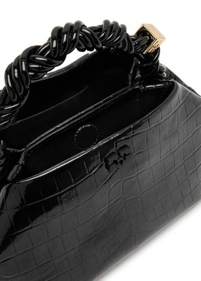 Copenhagen-based brand Ganni reshapes the meaning of Scandinavian style with its whimsy and playful approach to design. This top-handle bag has a detachable shoulder strap and features the brand's logo in golden hardware.