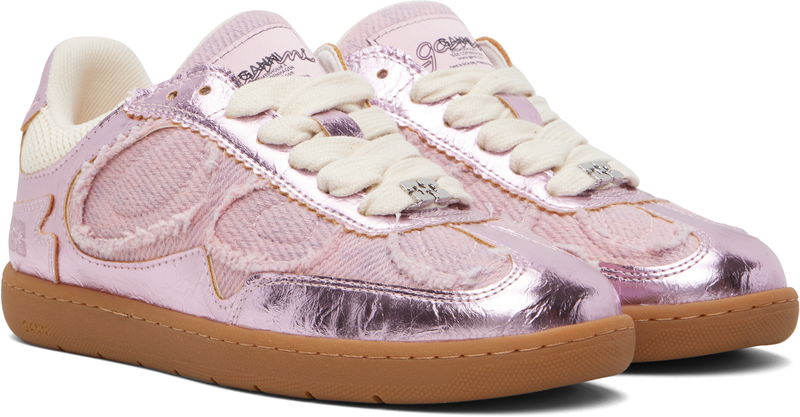 Pink Crinkle Metallic Sneakers