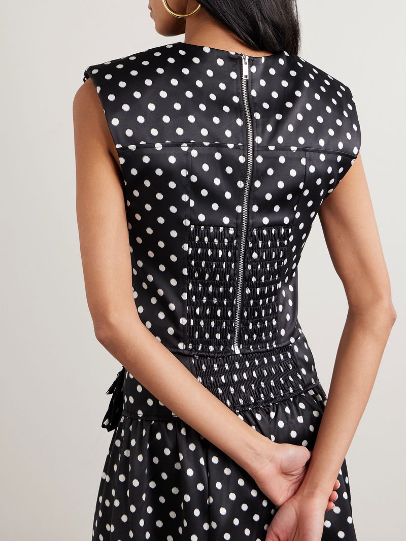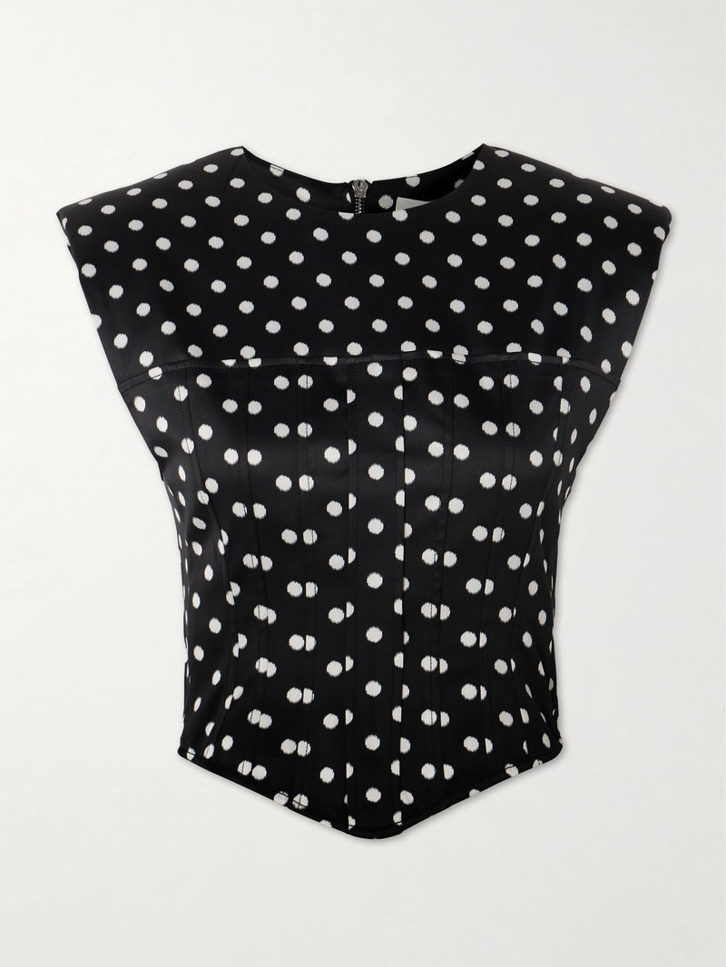 GANNI's corset top embodies the joys of dressing up. Mindfully made from recycled-satin, it's printed with playful polka-dots and boned for structure. We love it worn with the matching skirt.
