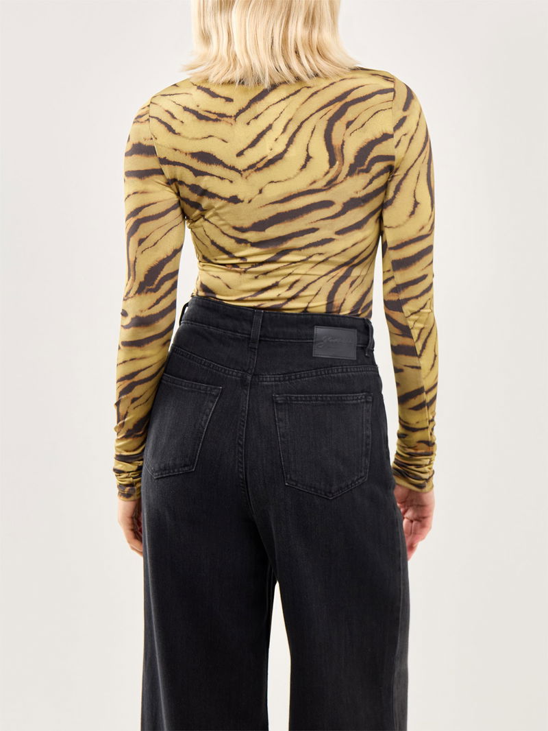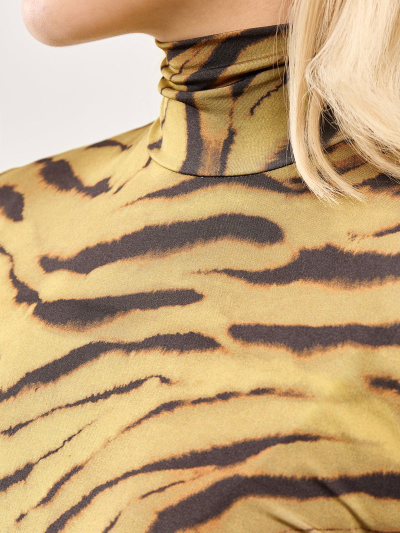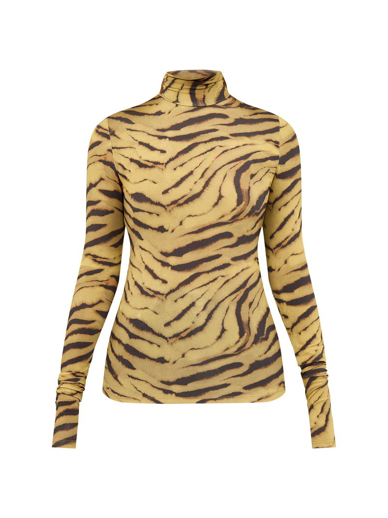 The Printed Shiny Jersey Turtleneck by Ganni introduces bold motifs in stretch fabric. With a fitted silhouette, it brings energy to layering. A top crafted for contemporary wardrobes.