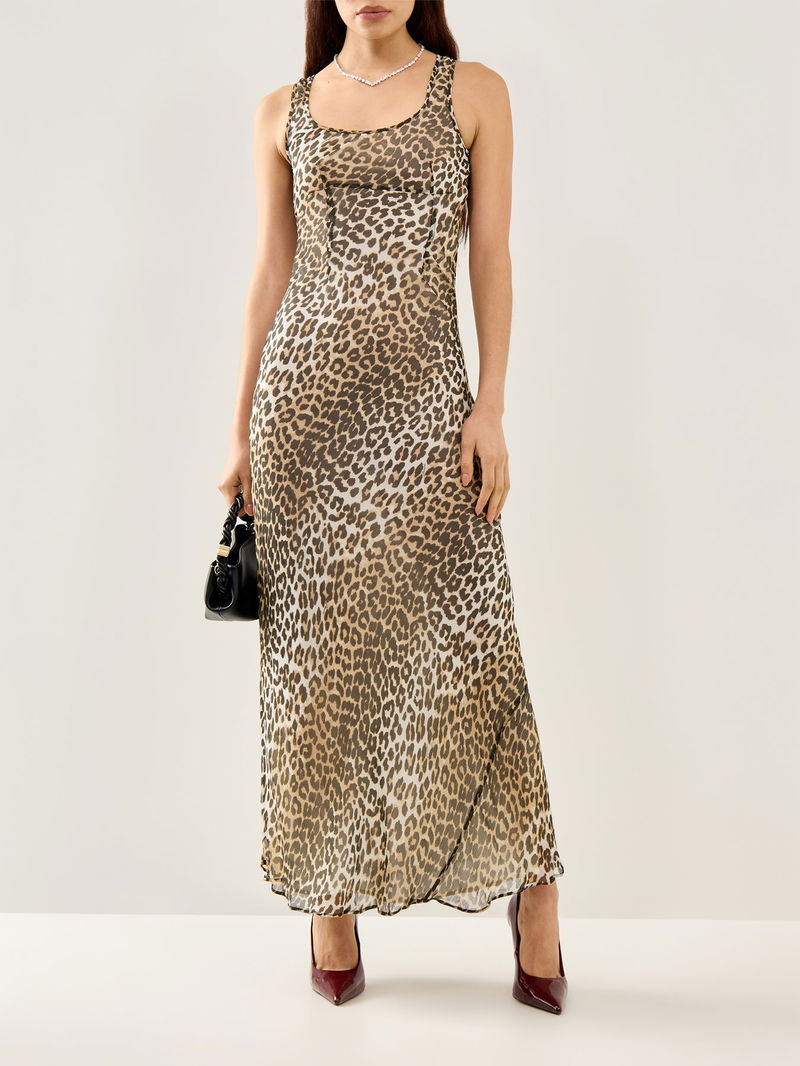The Printed Viscose Chiffon Maxi Dress by Ganni offers a lightweight chiffon drape and fluid movement. Its bold print adds contemporary confidence to the silhouette. A considered option for day or evening dressing.