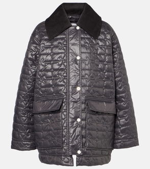 Long oversized puffer coat in tech fabric, finished with a mock-turtleneck, 4 front pockets, GANNI rubber logo detail, and zippable side slits. Style in cold weather with GANNI recycled wool accessories.