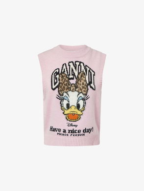 Jersey and purl knit organic cotton-blend vest· Rib knit crewneck, cropped hem, and armscyes· Intarsia logo at front.