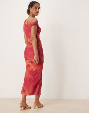 Dress, Textured-knit, Ruched, Concealed hook and zip fastening at back, Fully lined, Mid-weight knit.