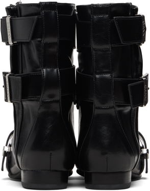 Ankle-high satin boots in beige and black.· Leopard pattern printed throughout· Pointed toe· Pin-buckle strap at vamp and ankle· Zip closure at inner side· Buffed faux-leather lining· Covered kitten heel with rubber injection· Rubber sole·