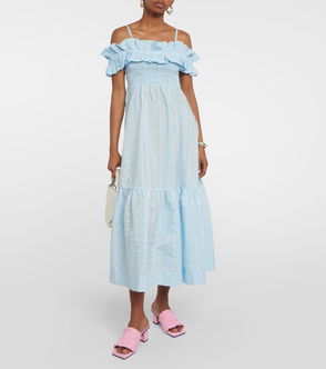 Oversized sleeveless maxi dress in responsible seersucker, finished with an elasticated open back.