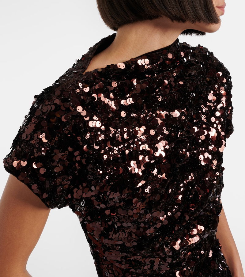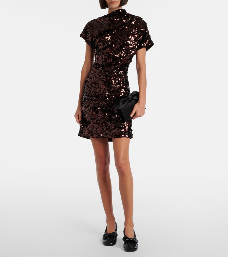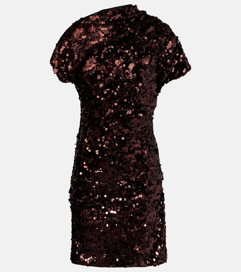 Ganni reshapes the meaning of Scandinavian style with its whimsy and playful approach to design, as showcased on this minidress. The design is complemented by an asymmetric neckline and decorated with glittering sequins throughout.