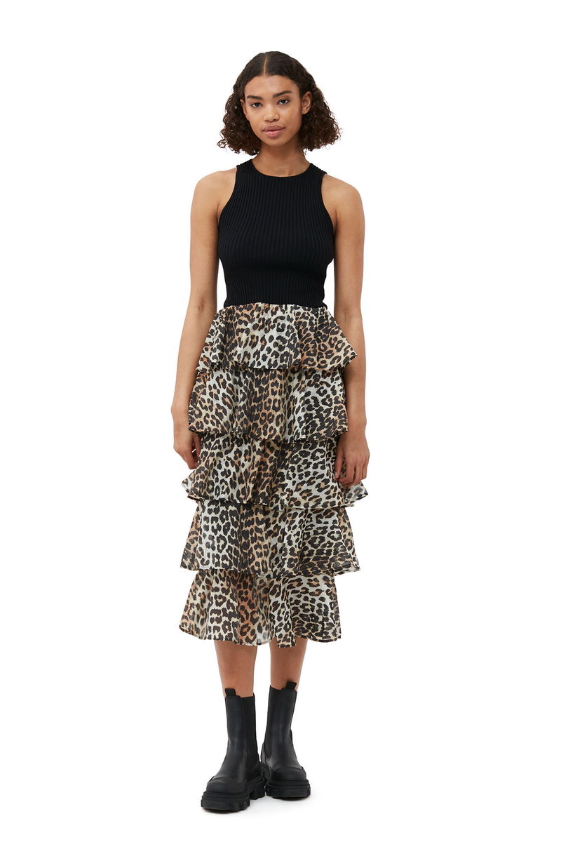 This Sheer Voile Maxi Flounce Skirt is made from a blend of TENCEL™ Lyocell fibers. The skirt is designed for a regular fit and features an elastic waist, tiered flounces and a leopard print.