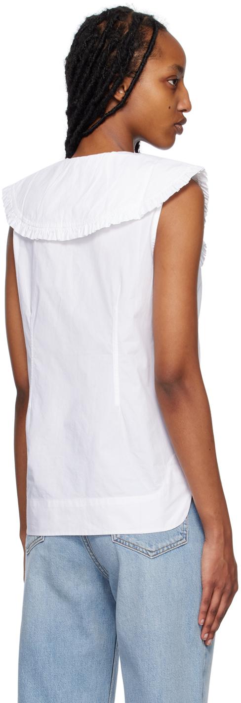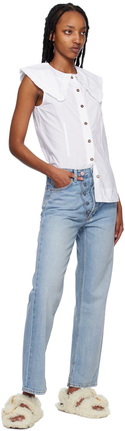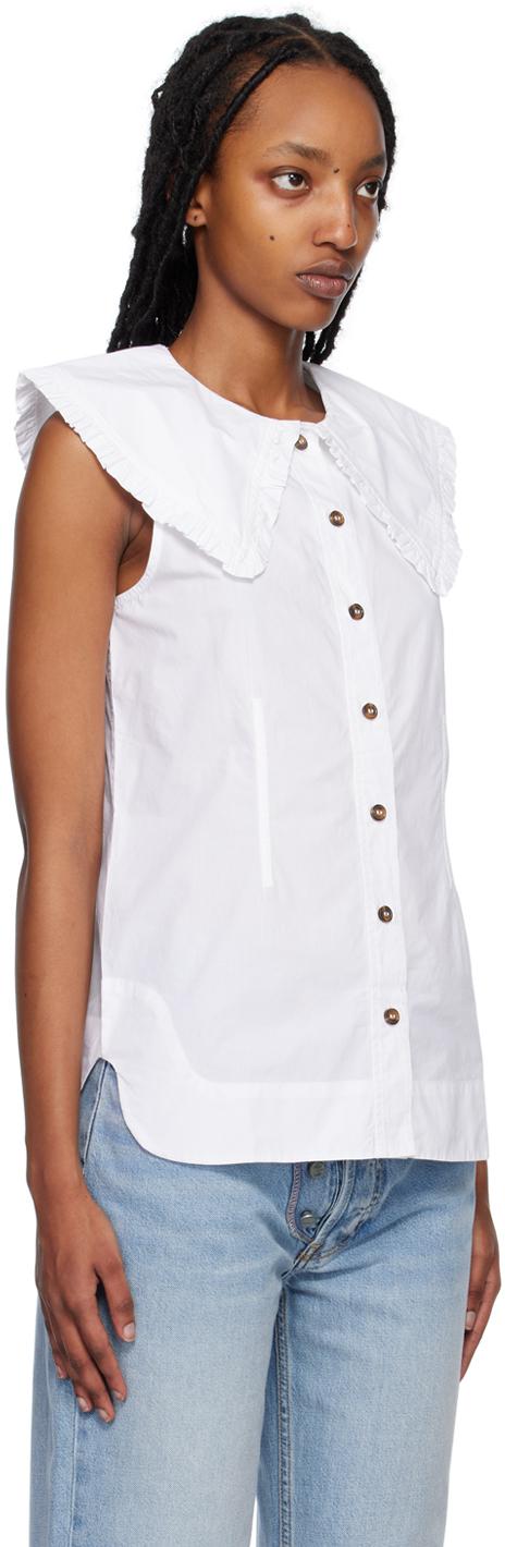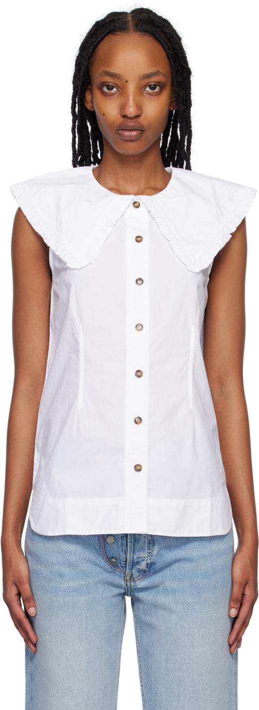 Organic cotton poplin shirt. · Scalloped edge at Peter Pan collar· Button closure· Shirttail hem · Tortoiseshell hardware.