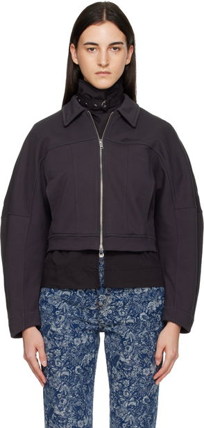Recycled polyester jersey track jacket.· Stand collar· Zip closure· Rubberized logo patch at chest· Zip seam pockets· Striped trim at sleeves.