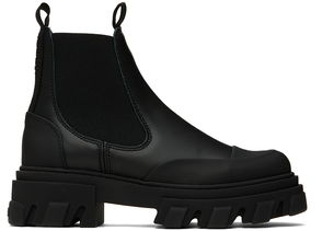 Mid-calf grained recycled leather-blend Chelsea boots in black.· Rubber cap toe· Webbing pull-loops at collar· Elasticized gusset at sides· Logo bonded at heel tab· Buffed faux-leather lining· Logo embossed at heel· Treaded rubber sole·