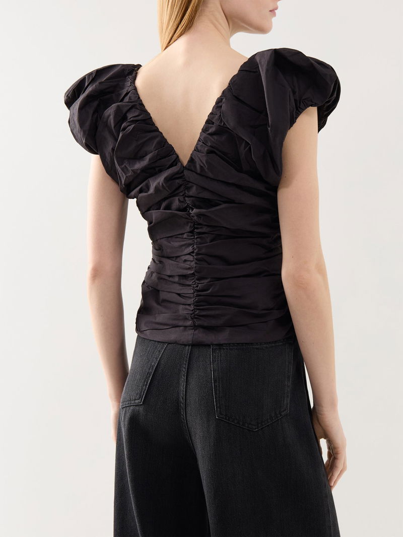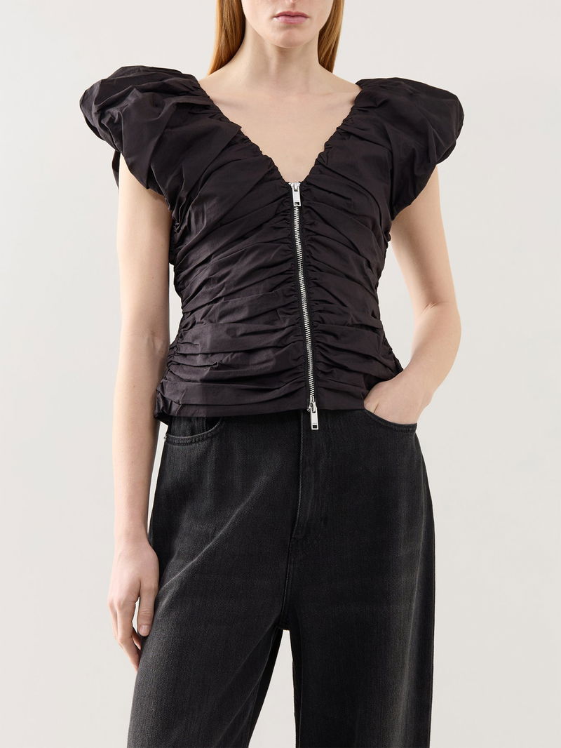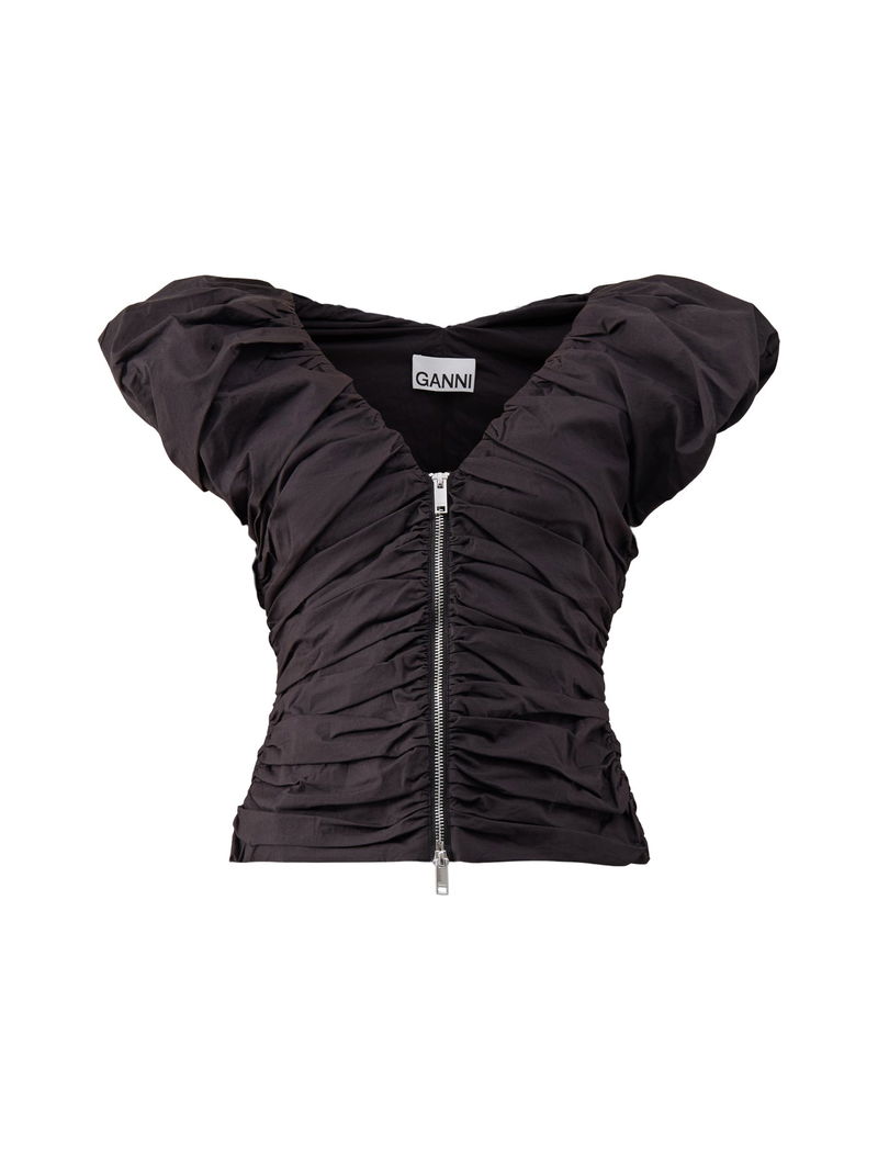 The Stretch Cotton Ruched Top by Ganni features a close-fitting silhouette with gathered detailing for subtle shape. Informed by Scandinavian design principles, the brand creates expressive pieces that remain effortless to wear. A refined piece designed to bring balance to a curated wardrobe.