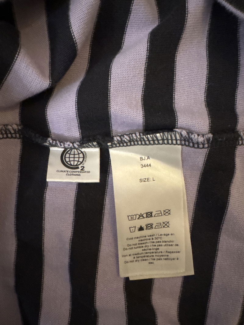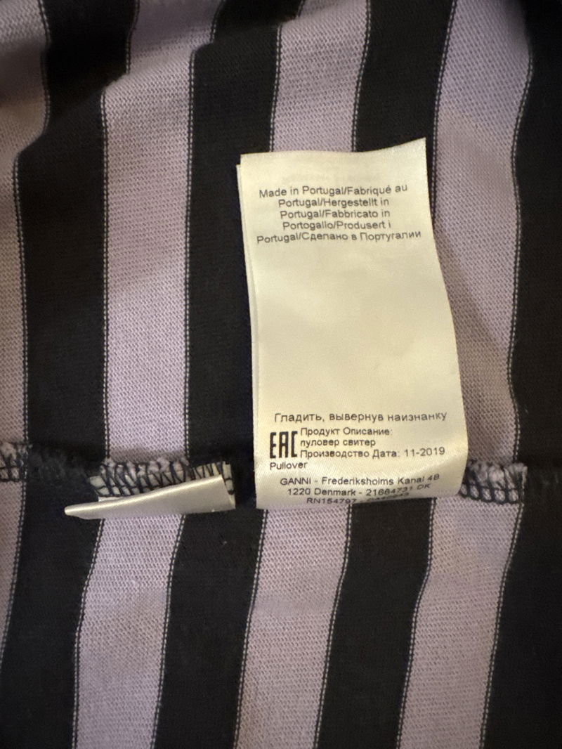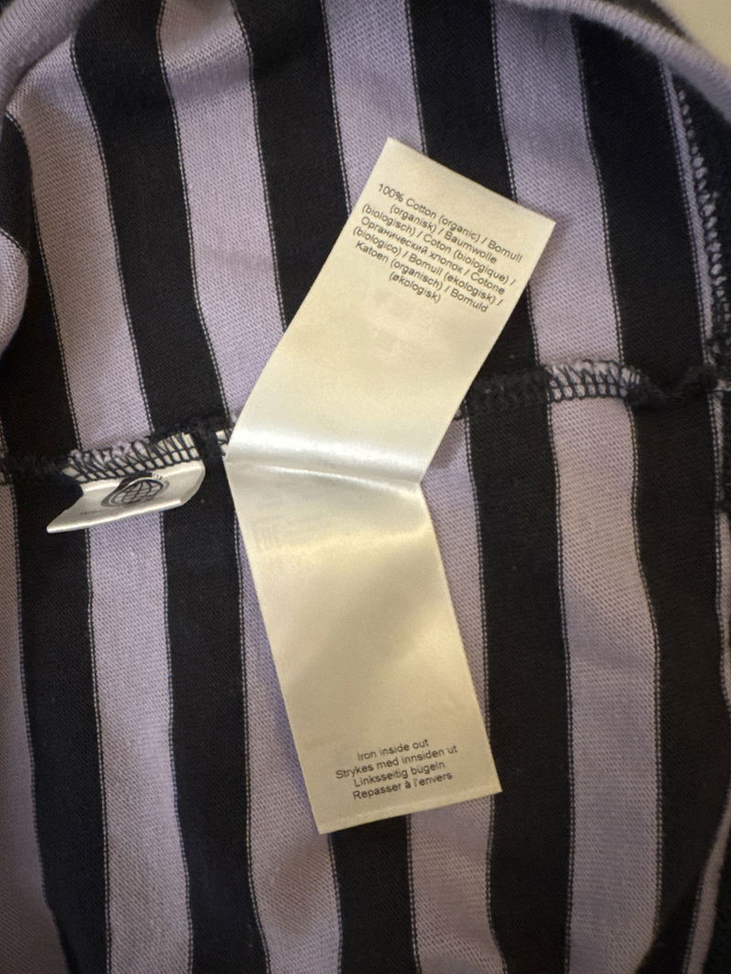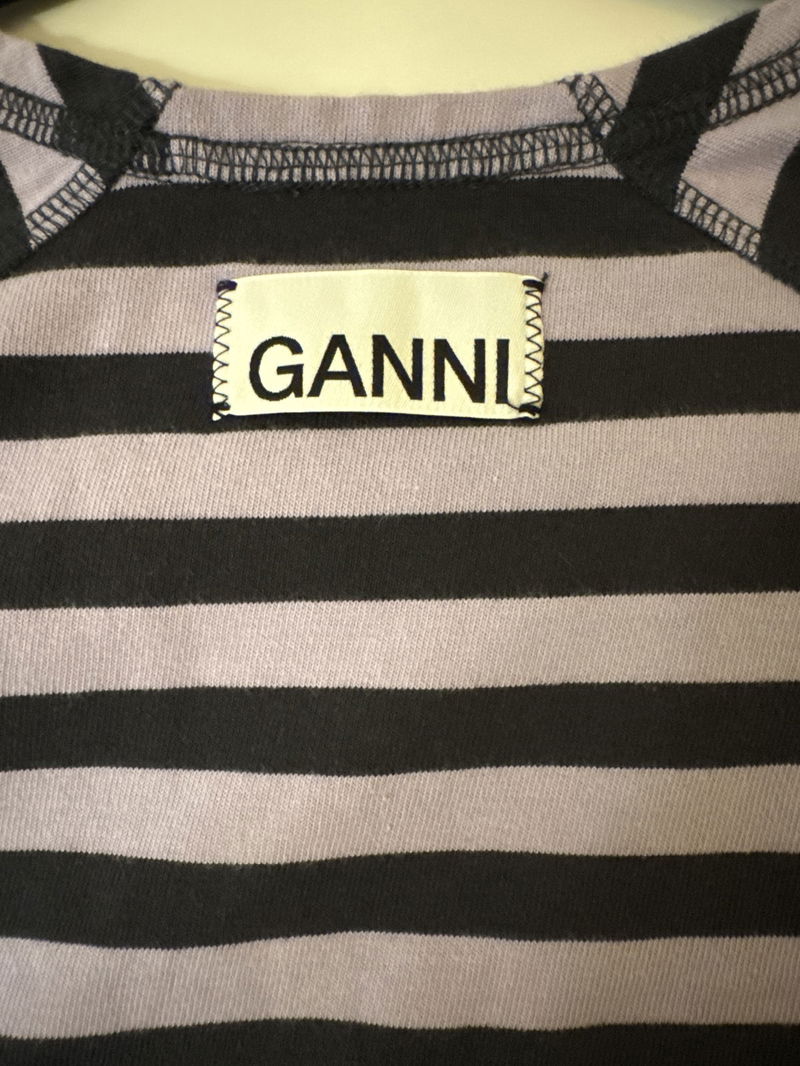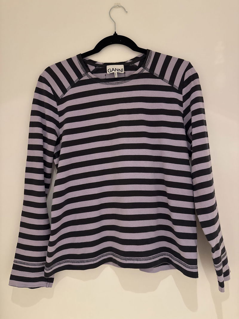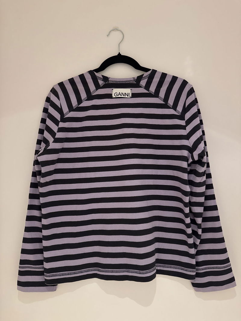 Long sleeve t-shirt in striped organic cotton jersey with an exposed back GANNI logo tag and raglan seamed sleeves. Style with a clashing print.