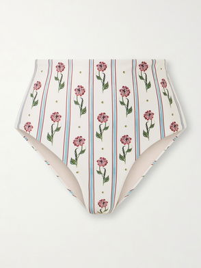 These brown, black and blue striped bikini briefs are crafted with a recycled technical shell, nodding to Ganni’s sustainable ethos. The full-coverage silhouette stretches to a flattering fit with a curved waist and complete with black lining. Team them with the coordinating bikini top and sandals for a graphic poolside look.