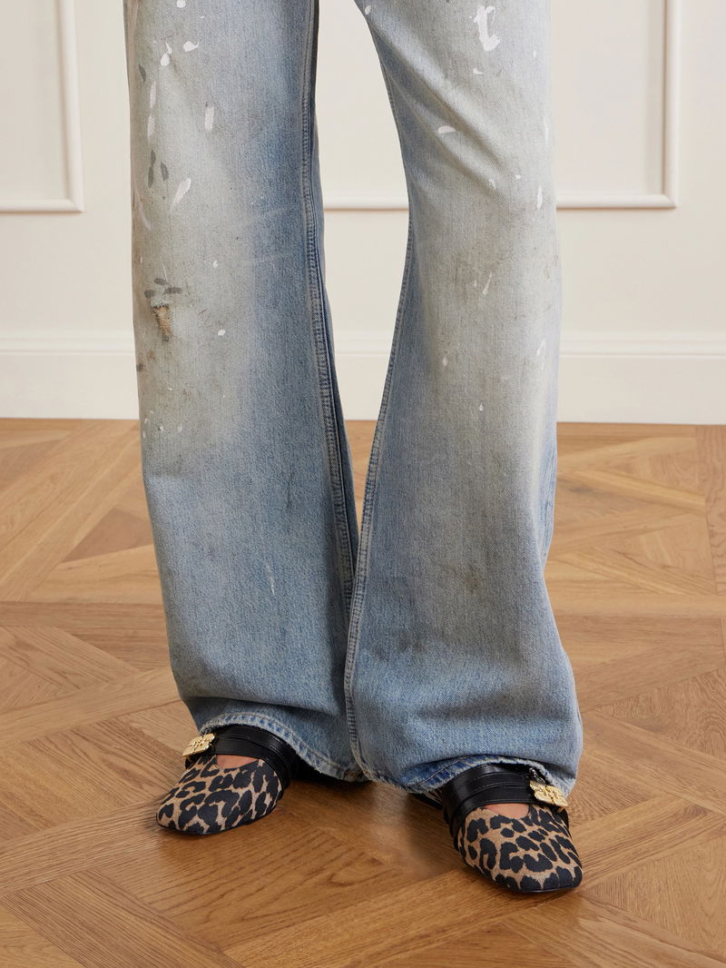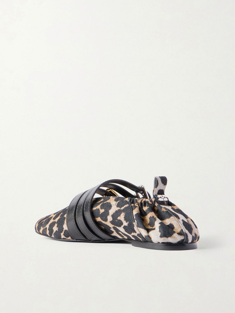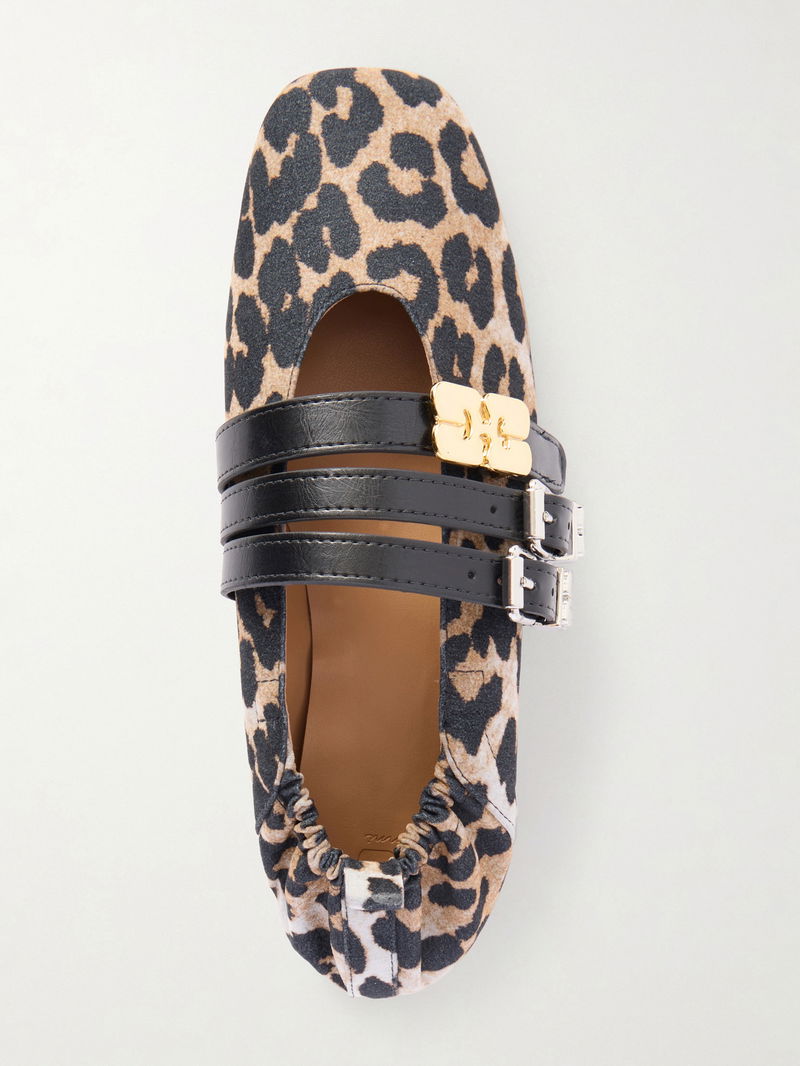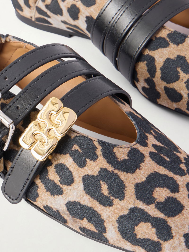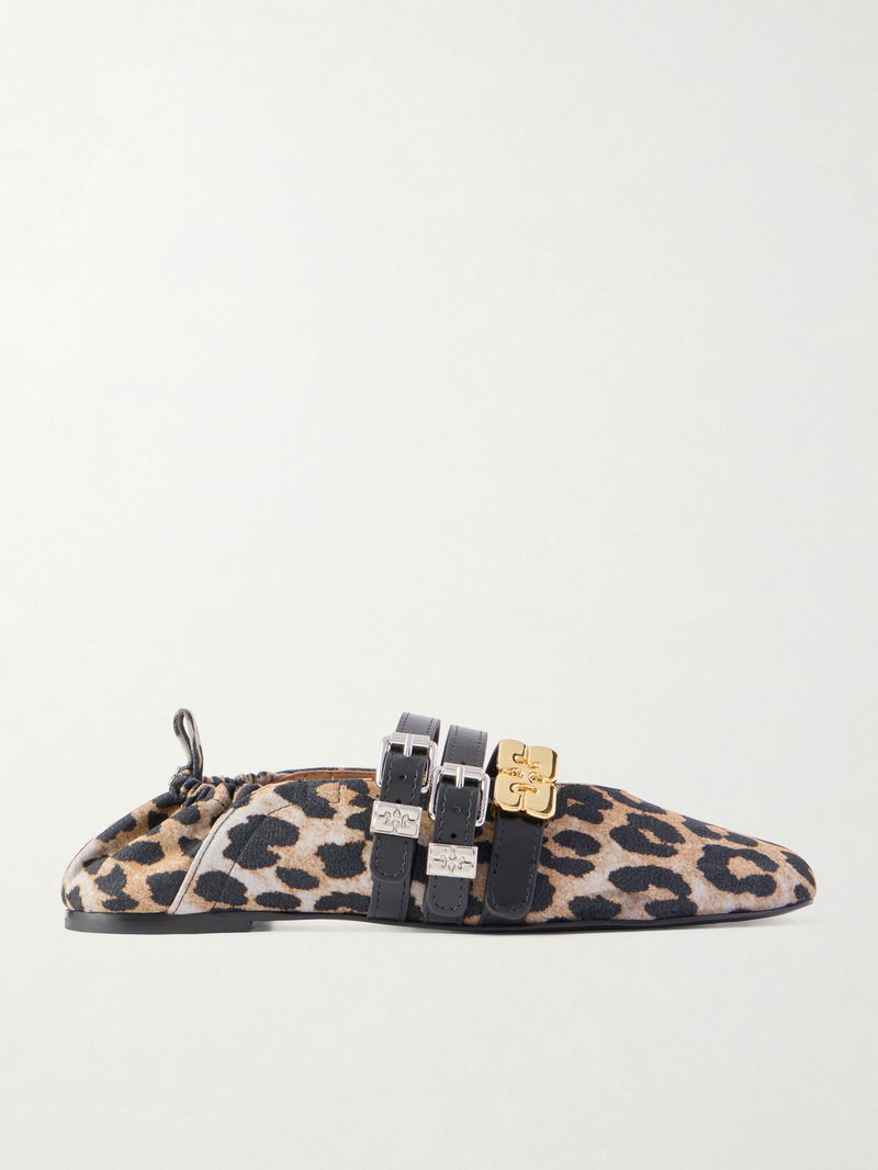 GANNI's playful, statement-making aesthetic comes through in these leopard-print 'Sue' ballet flats. Made from flocked denim, they have comfortable elasticated backs and three buckled straps adorned with logo hardware. Style them with relaxed tailoring or vintage jeans to underscore the label's effortless cool.