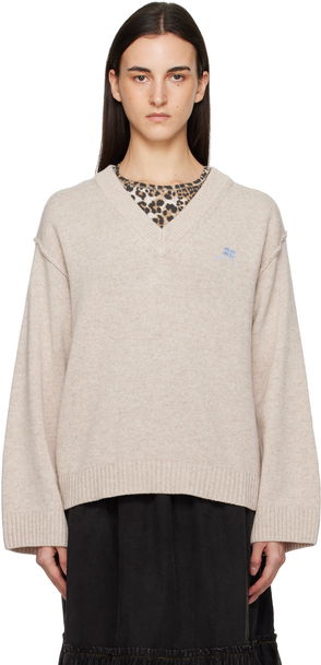 Rib knit stretch alpaca wool- and merino wool-blend sweater. · Gathering at sweetheart neck · Logo embroidered at front.