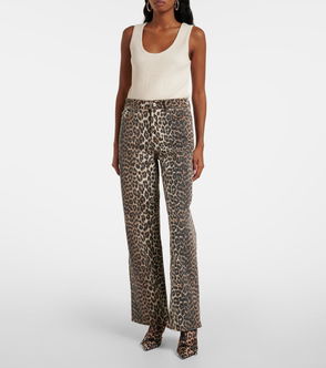 Straight-leg non-stretch organic cotton denim jeans. Graphic pattern printed throughout. High-rise Belt loops Five-pocket styling Button-fly Embroidered logo patch at back Contrast stitching in yellow