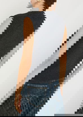 Open-knit recycled cotton- and recycled polyester-blend vest. · Rib-knit crewneck, hem, and armscyes· Intarsia logo at front.