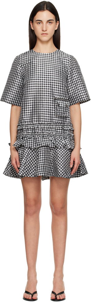 Organic cotton poplin dress.· Round neck· Self-tie fastenings· Gathering at waist· Puff sleeves· Elasticized cuffs.