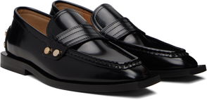 Grained leather loafers in blue.· Almond moc toe· Strap with cut out at vamp· Logo-embossed textured rubber midsole· Treaded rubber outsole ·