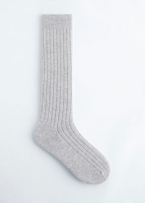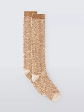 Knee-high socks in wool-poly stretch blend. Style peeking out of boots or loafers.
