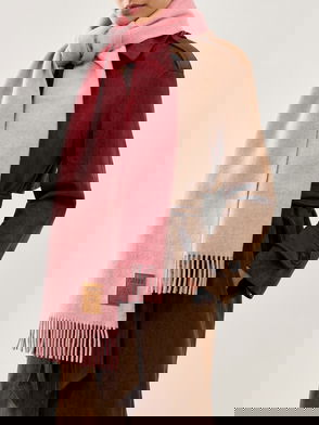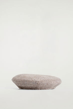 Lightweight rib knit wool- and recycled wool-blend beret in pink. Logo patch at face.