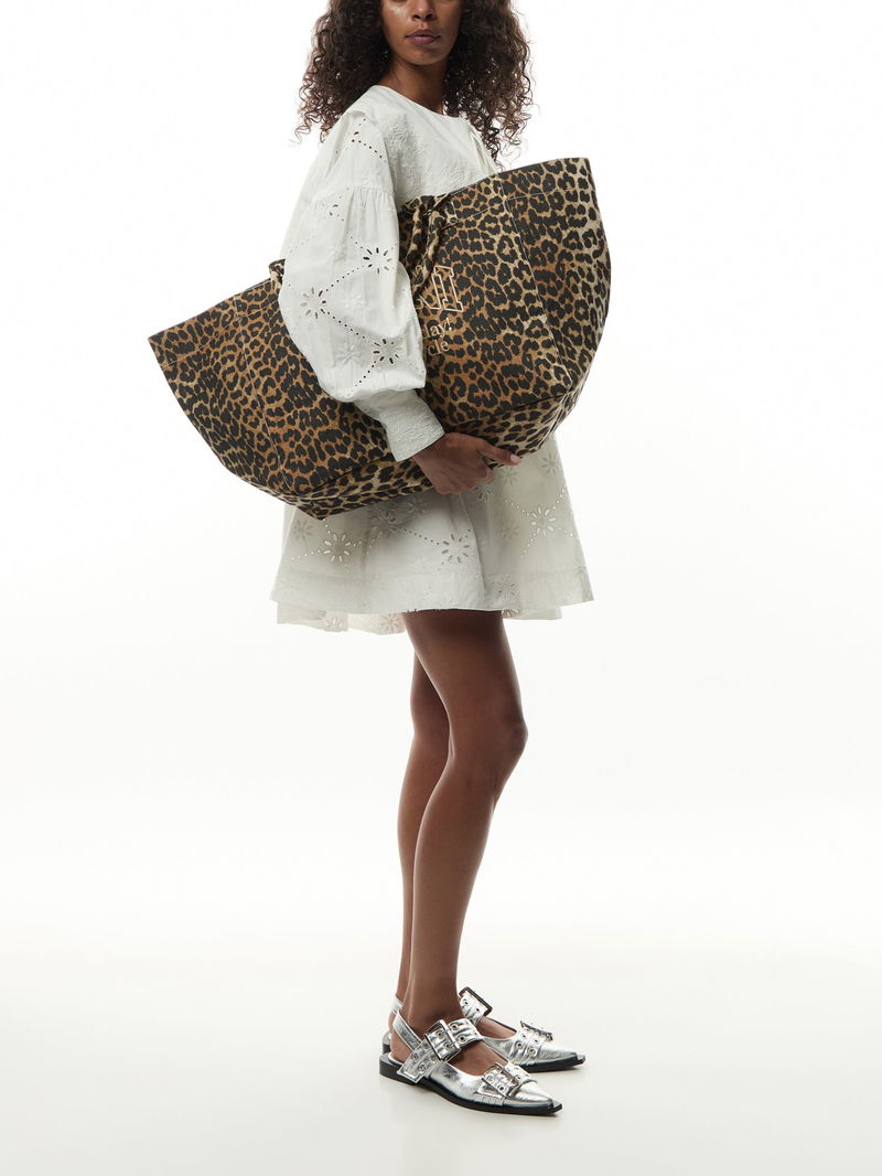 XXL Leopard-Print Canvas Shopper Tote Bag