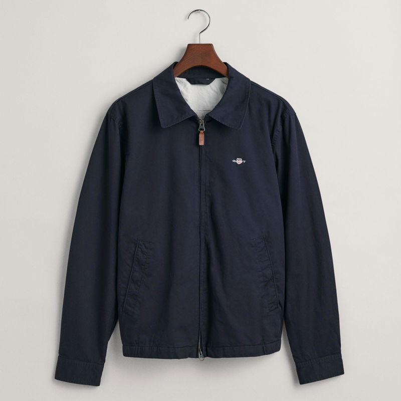 The Cotton Windcheater is a timeless GANT classic that has been a staple for years. It comes in a regular fit with a partly elasticated hem giving it a fitted silhouette and sits just above the hips. The jacket is half-lined and features a front zip closure slanted side welt pockets and two interior jetted pockets. It's adorned with an embroidered Archive Shield graphic on the chest and includes a GANT branded locker loop at the back.