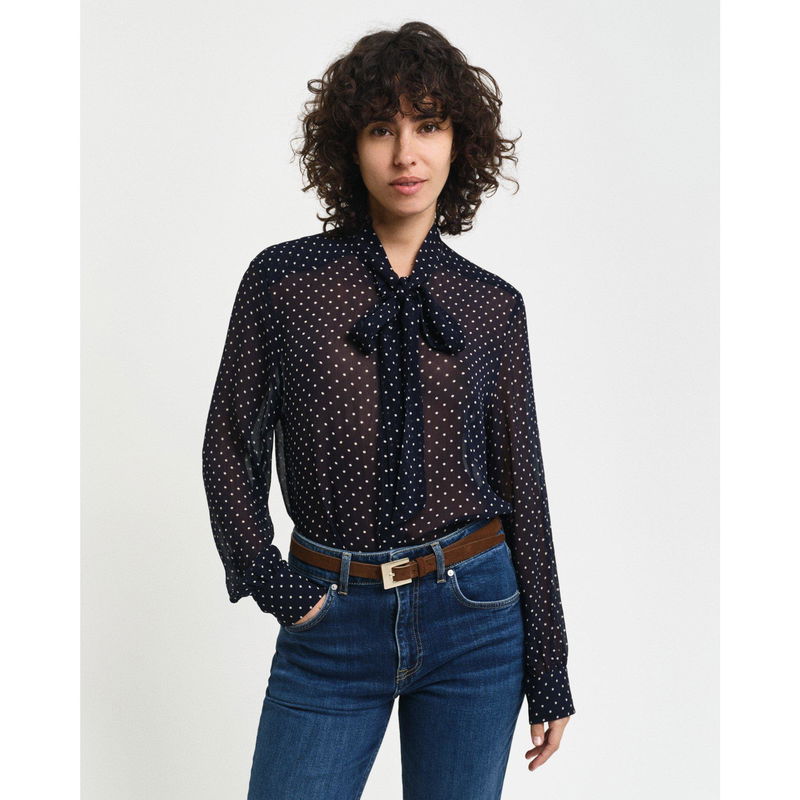 Update your wardrobe with Gant's Dot Print Bow Long-Sleeve Patterned Shirt. This fashion blouse features a classic polka dot pattern complemented by a bow detail for dressy styling with a funky twist.