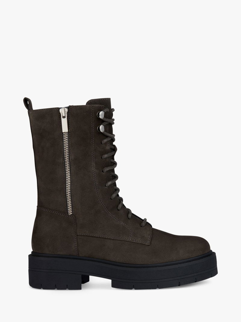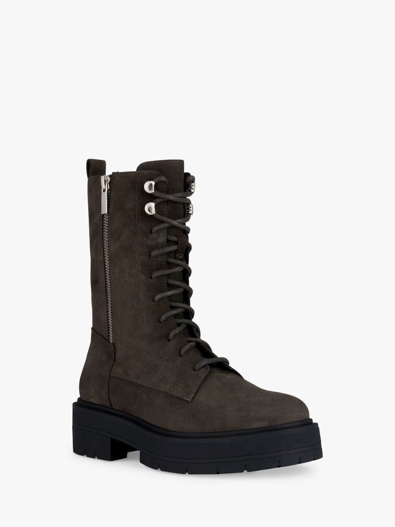 Updating your cool-weather collection, this chic pair of boots by Geox offers a luxurious feel with its supple leather. Resting on a block heel with a size-zip closure, they are shaped with a round toe for everyday appeal.