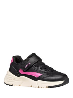 Romantic and charming, the Tutim trainer from Geox is perfect for everyday wear and their first trips out and about exploring the world. Rendered in suede, it fastens with a quick and easy double riptape strap. Plus, take note of the large outsole protecting the toe and heel, allowing them to safely crawl about and explore. The TR outsole is durable, lightweight and non-slip, while the tread boasts the Softly Cushioned System for comfort and cushioning. Finally, the removable footbed is lined in non-toxic, chrome-free leather to ensure little feet stay dry all day long.