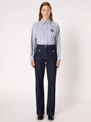 Evocative of 60s and 70s cuts, these bootcut high-waisted jeans from Gerard Darel reinvent the classics with their denim composition and boast a head-turning geometric print