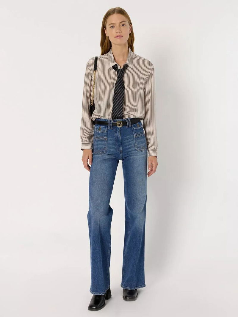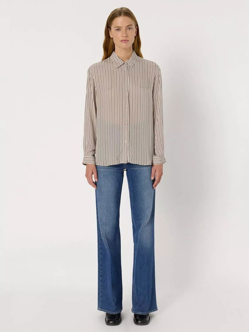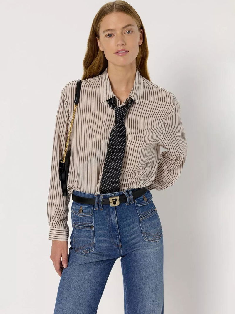 A blouse by Gerard Darel. With a collar neck and long sleeves, it's patterned in stripes. A wear-everywhere essential.