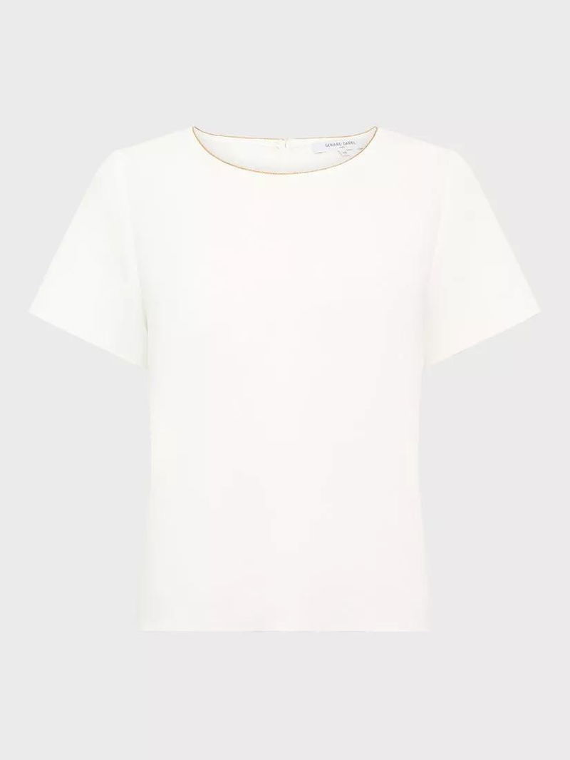 A lightweight, short-sleeve top with a subtle colour contrast neckline.